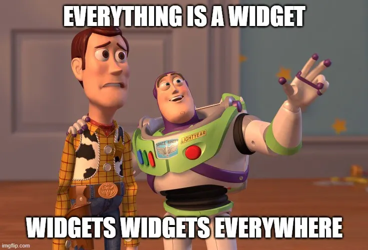 구조적인 요소, 스타일적인 요소, 레이아웃 요소 등 많은 것이 위젯이라는 객체로 만들어져 있다.
