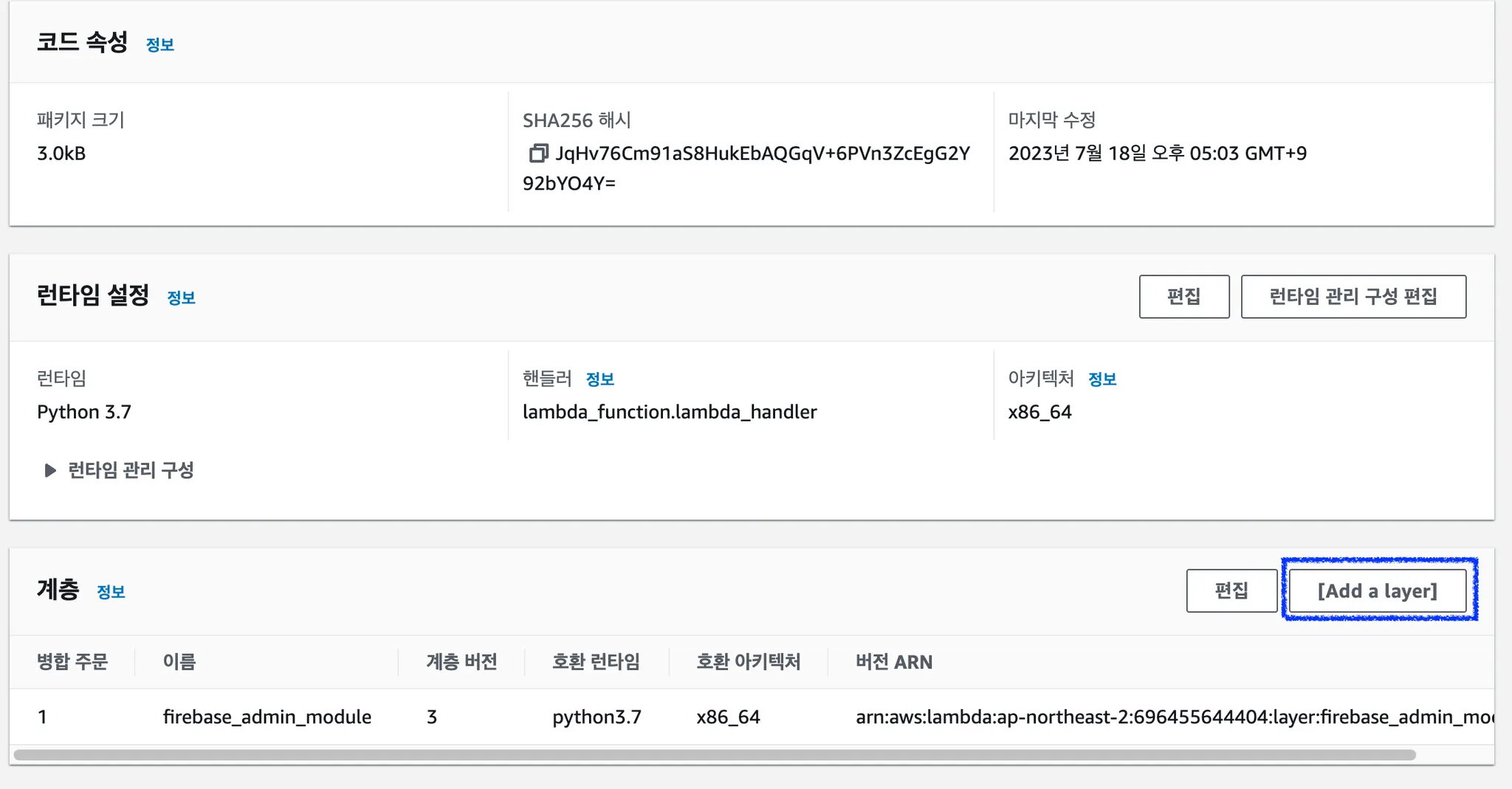 → 주의사항 - firebase-admin 모듈을 위에서 설치했다면, 해당 모듈의 최상위 폴더를 ‘python’이라는 이름으로 변경, 압축하여 업로드해야지 람다가 알아듣는다!