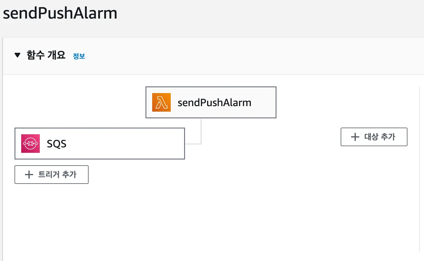 위 FCM에 대한 구성을 마쳤다면, 위 그림처럼 준비가 끝난 것이다. 이제, DeviceToken을 가지고 SQS-Lambda를 연결해보자.