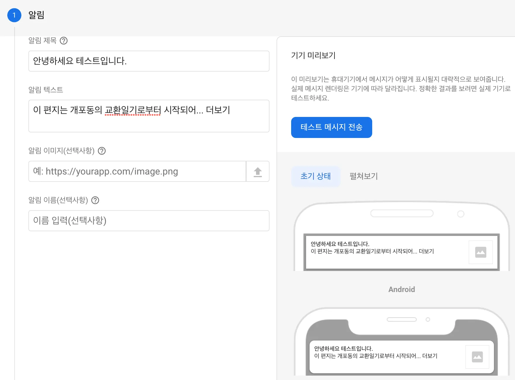 여기서 ‘테스트 메시지 전송’은 iOS의 경우 Device Token이 필요하다. Device Token은 FCM 모듈이 설치되어 있는 앱을 사용하면 사용하는 기기에 대해 식별자처럼 부여해주는 토큰을 의미한다.