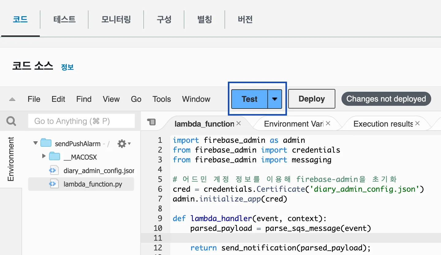 Lambda를 설정할 때, Node.js의 경우에는 메시징을 위해 사용해야하는 모듈인 firebase-admin의 의존성 용량이 람다가 기본적으로 수용할 수 있는 용량을 넘어가게 되므로, Python을 사용하는 것이 정신건강에 좋다..!