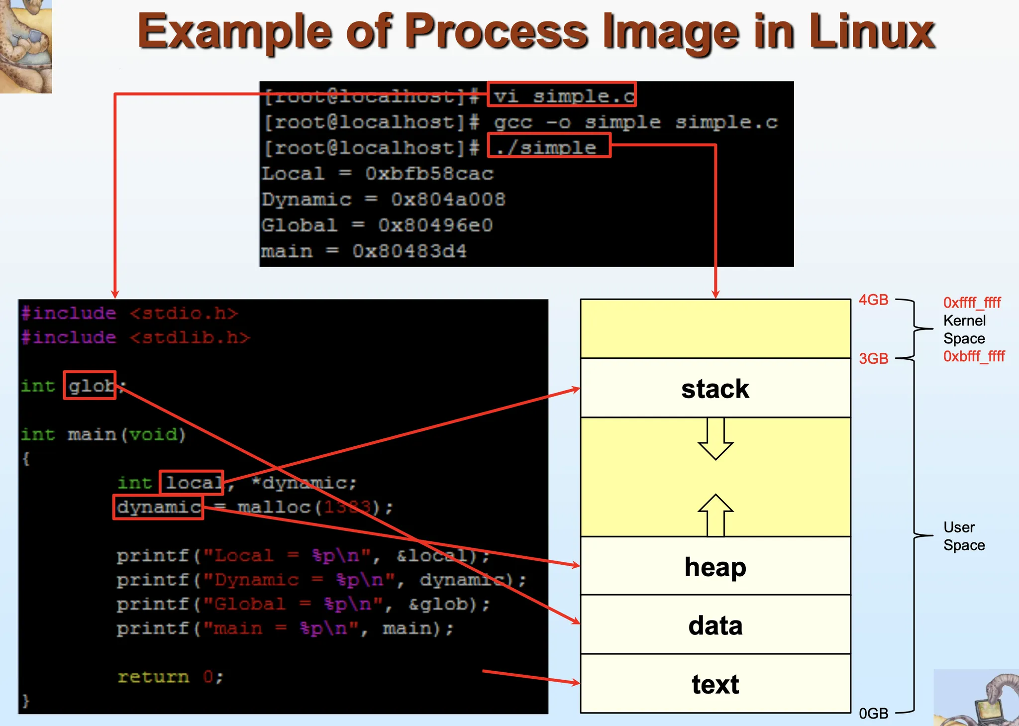 프로세스는 운영체제에 의해서 관리 되며, 프로세스 별로 사용 가능한 메모리 영역이 존재한다.(기본적으로 서로 다른 프로세스는 각 프로세스가 사용하는 메모리 공간을 읽고 쓰는 것이 불가능하다) 프로그램이 프로세스로써 돌아가게 되면 프로그램의 Code와 Data는 프로세스 메모리로 불러들여 진다. 이 때 프로세스는 Code Segment, Data Segment, Heap, Stack (Stack은 함수의 호출 기록 및 지역 변수들의 기록이 담겨 있다.)의 구조로 메모리 레이아웃을 가진다. (프로그램은 HDD, SSD와 같은 곳에 존재하고, 프로세스는 RAM에 존재한다.)