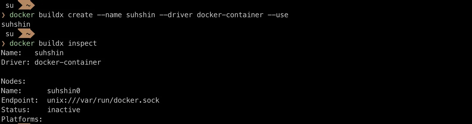 이제 터미널에서 buildx가 잘 활성화 되었는지 확인해보자!