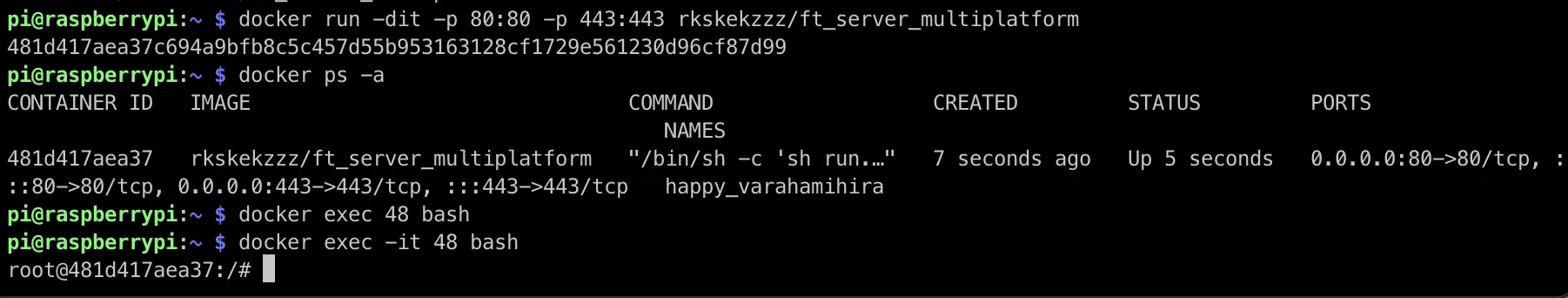 실제로 ft_server를 실행시킬 때 사용하는 명령어를 넣어서 작동시켜 보았다.