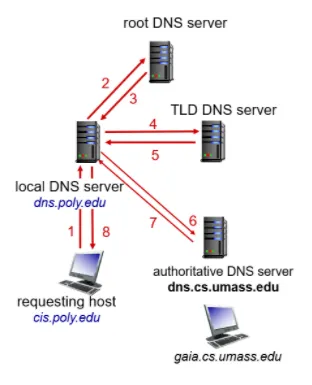 하나의 네임 서버에게 DNS 요청을 전달하고 해당 서버에 정보가 없으면 다른 네임 서버에게 요청을 보내 정보를 받아 온다.