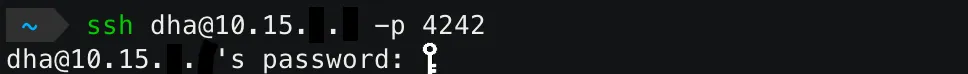 위와 같이 모두 설정을 하고 난 후, SSH로 연결을 시도하면 문제 없이 유저의 비밀번호를 입력하는 줄이 나온다.