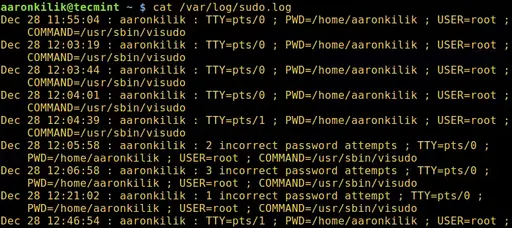 유저들이 sudo를 통해서 어떤 명령어를 실행했는지 확인하기 위해서 sudo 명령어에 대해 로깅을 할 수 있다.