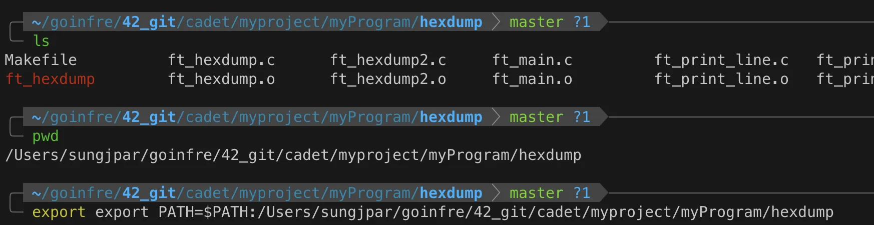 이제는 ft_hexdump가 PATH를 통해 읽혀 편리하게 사용할 수 있다.