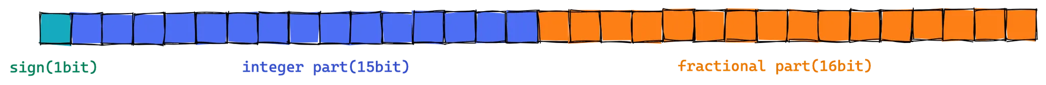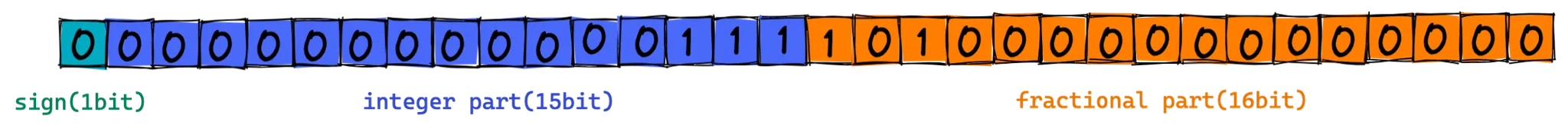 고정 소수점이 표현할 수 있는 실수는 한계가 있다. 왜냐하면 정수는 15비트로, 소수는 16비트 안에서 표현해야 하기 때문이다.