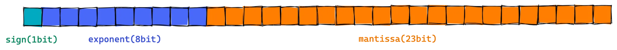 다음 23비트는 가수부를 나타냅니다. 소수 부분의 값으로 채웁니다.