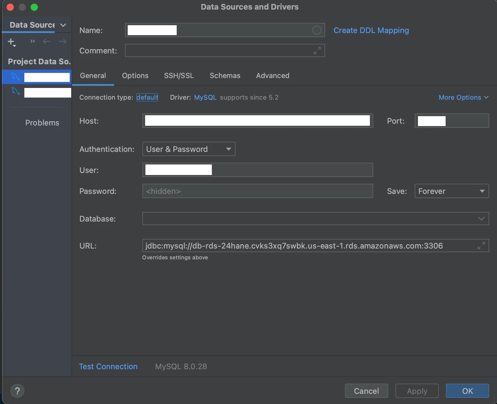 Test Connection을 눌러 연결이 되는지 확인합니다.