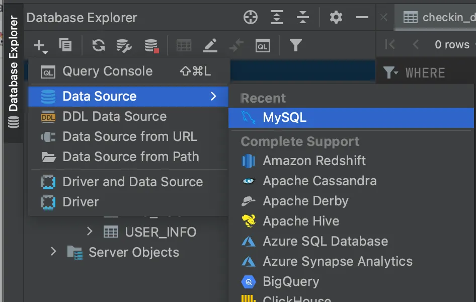 테이블별로 Query Console을 이용해 직접 쿼리를 보내볼 수 있습니다.
