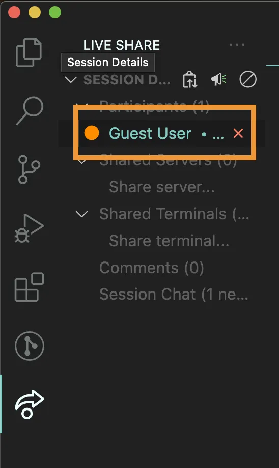 현재 상대방이 편집 중인 파일을 계속해서 따라가고 싶다면 Live Share 탭에 들어가서 상대방의 이름을 클릭하면 된다. (Following 기능)