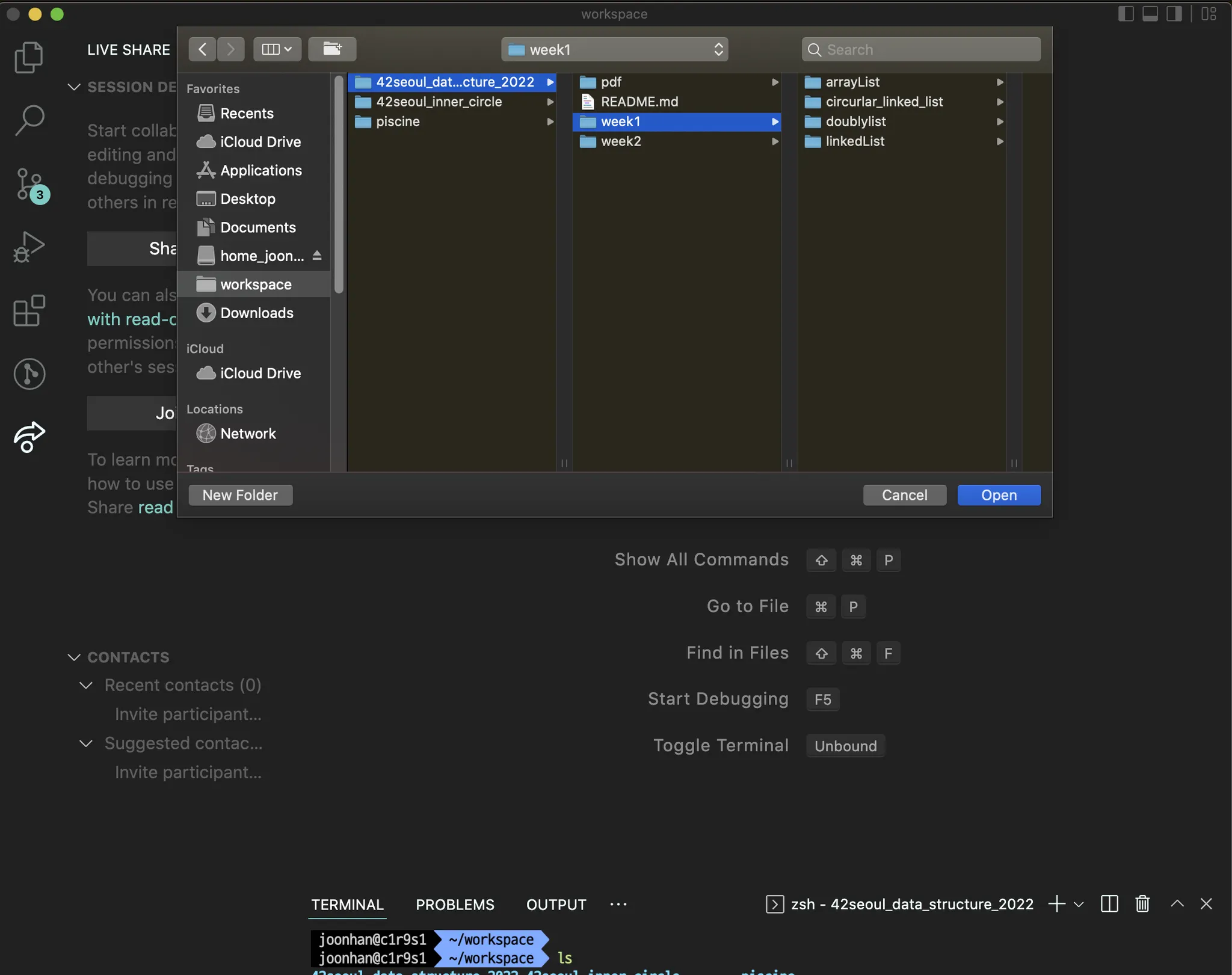 상대방과 공유하고 싶은 폴더를 Command + O (Windows 는 Ctrl + O) 를 눌러 선택한다.