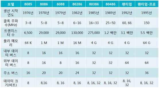 *연식별 레지스터의 종류 즉, 정보 처리 방식(데이터 처리 단위)에 따라 8비트, 16비트, 32비트로 다름을 확인할 수 있다. (표의 맨 아래 항목)