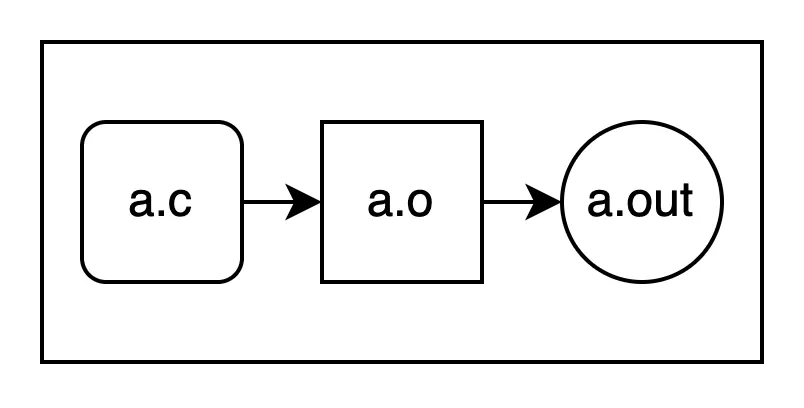 a.out을 빌드하기 위해서는 a.o가 필요하고, a.o를 빌드하기 위해서는 a.c가 필요합니다.