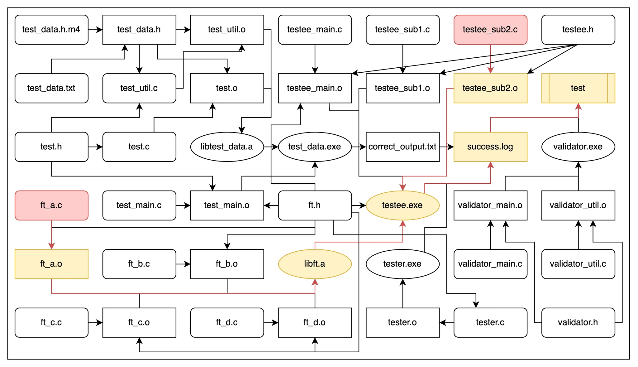 여기서 ft_a.c와 testee_sub2.c가 바뀌면 그 변경사항을 test에 반영하려면 어떻게 해야 할까요?