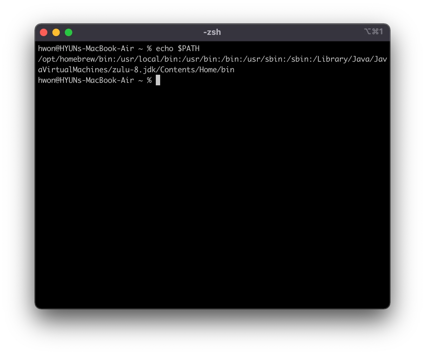 이후 ~/.zshrc 파일에 복사한 경로를 JAVA_PATH 환경변수로 등록해둡니다.
