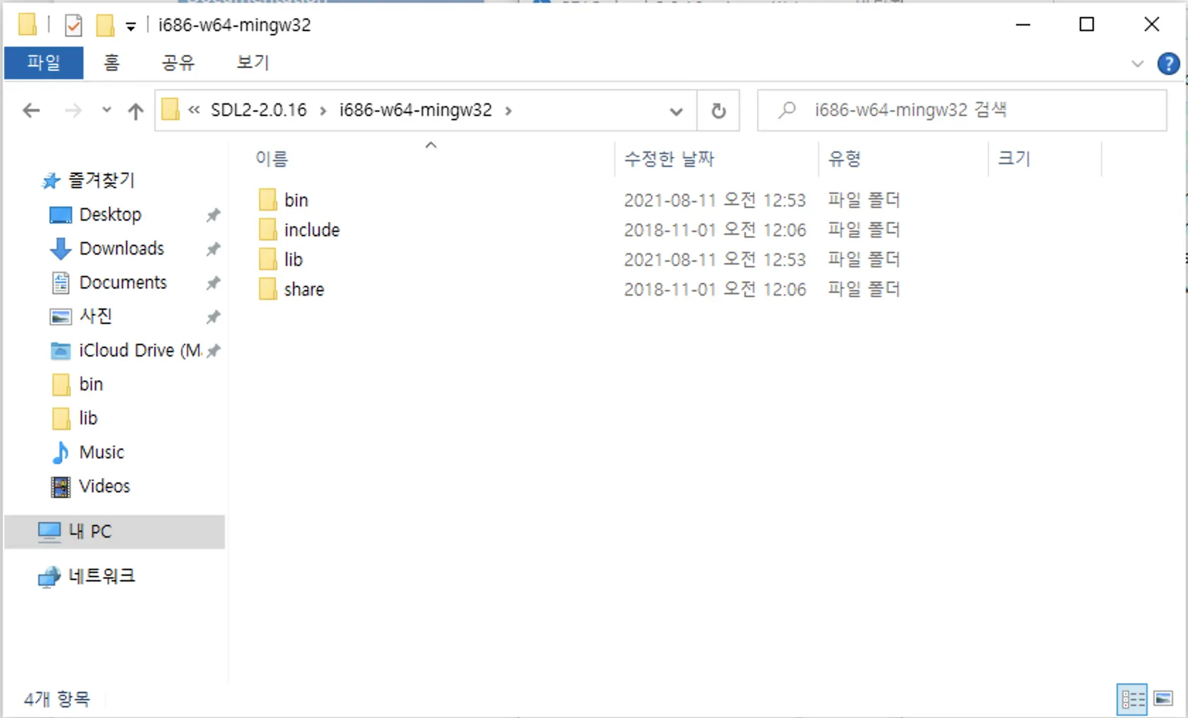그중에서 i686-w64-mingw32 폴더에 들어간다.