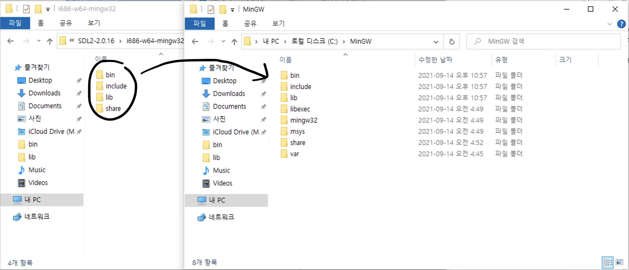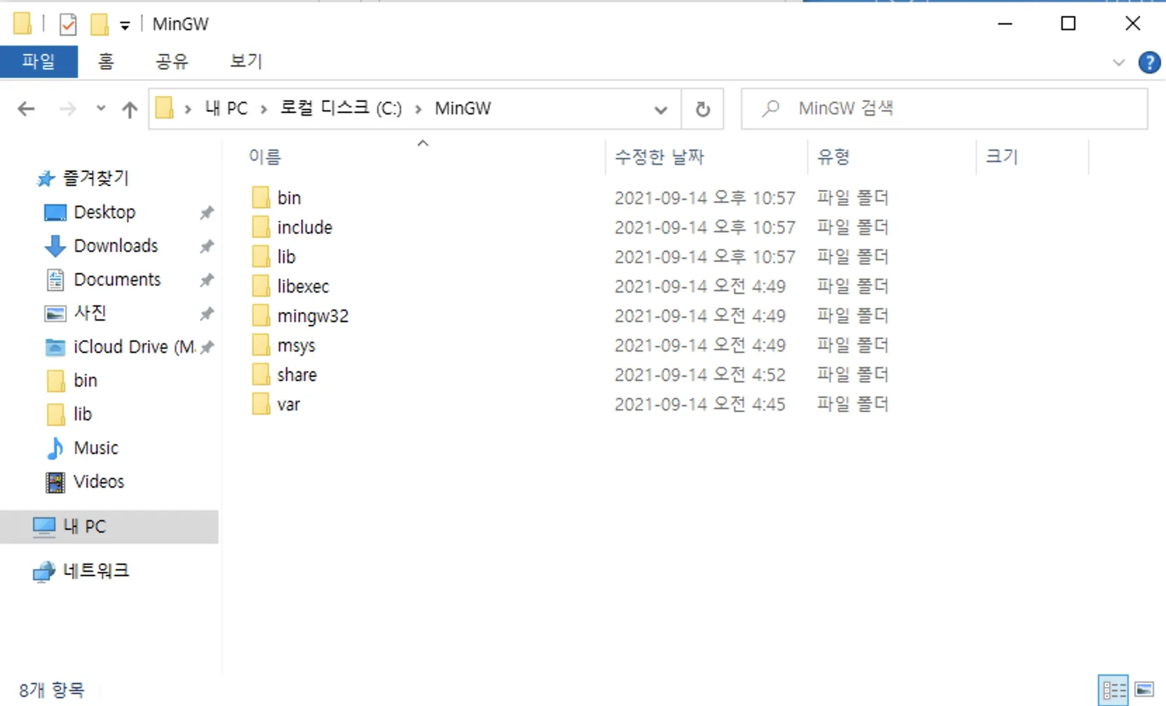 그리고 이제 MinGW 설치 폴더를 연다