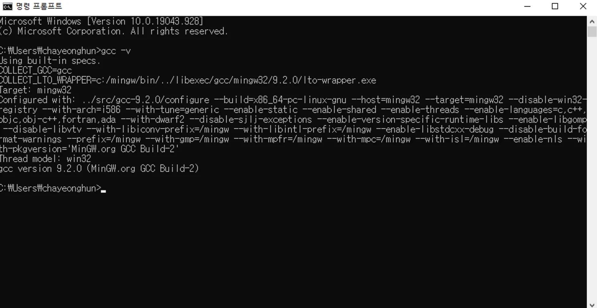 일단 gcc가 필요하기 떄문에 MinGW 을 설치한다. (자세한 설치 방법은 구글링 해보는것을 추천한다.)