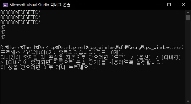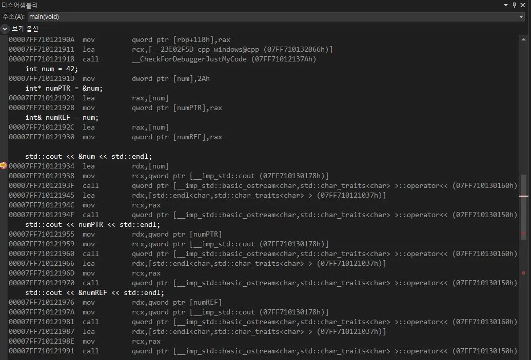 참조와 포인터의 내부 동작이 동일한 것을 확인할 수 있다.