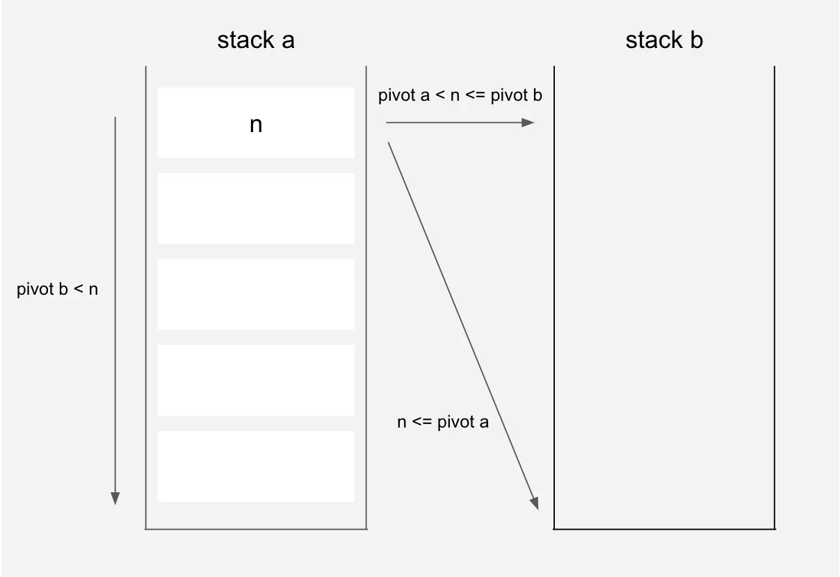 우선 push_swap 과제에서 그리디를 사용하려면 pivot 값을 정하여 값의 크기에 따라서 partitioning 해준 뒤, 그것을 그대로 정렬하면 되는 것입니다.