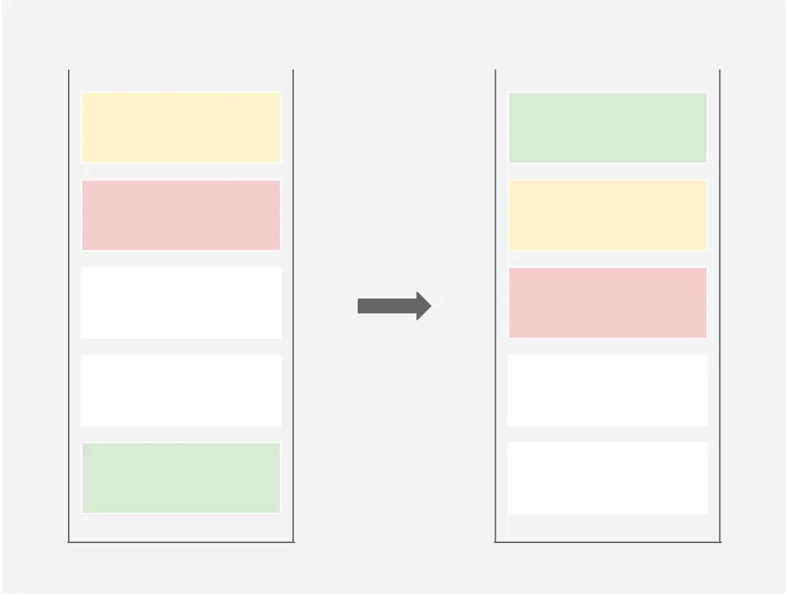 우선 stack a에 아래와 같이 들어왔다면 partitioning 이후에는 stack b에 저런 모습으로 담겨있을 것입니다. (pivot을 구하는 기준은 조금씩 다르기 때문에 아래 예시와 완벽히 같은 모습이 아니어도 괜찮습니다.)