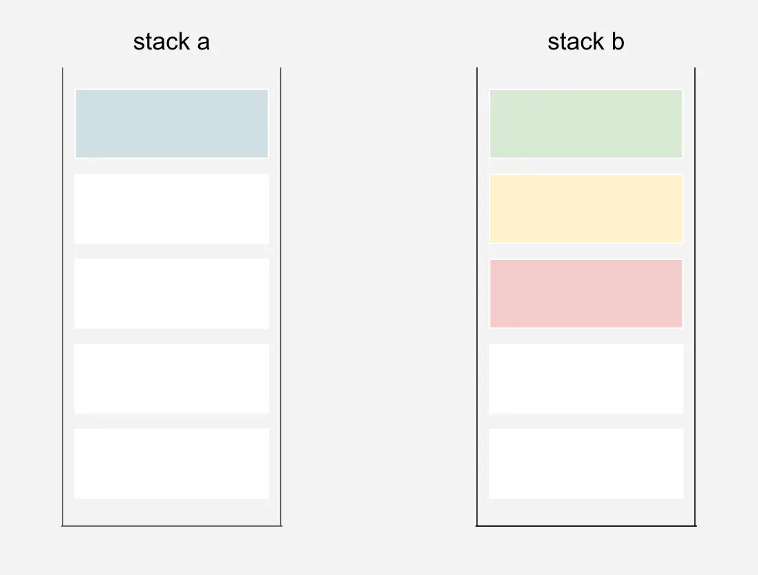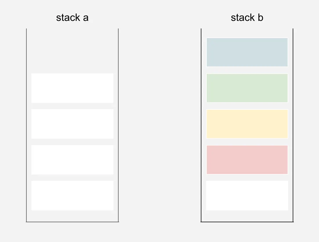stack a에 넘어간 것은 stack b로 돌아오지 않는다.