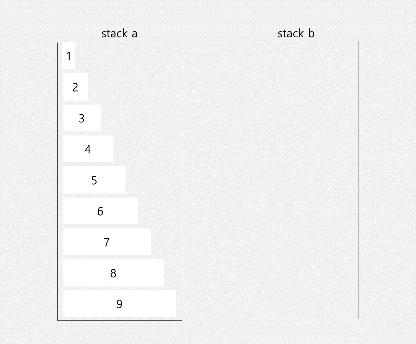 stack 2개를 사용하여 stack a에 있는 수를 오름차순으로 정렬하는 것