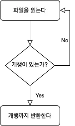 이렇게 풀어놓고 보니 각 로직이 수행하는 역할의 특징이 보이시나요? 파일을 읽는 로직은 파일을 읽고, 읽어온 데이터를 저장합니다. 개행 판별 로직은, 개행이 있는지를 판별하기만 합니다. 문자열을 순회하기 위한 인덱스를 제외하고는 값을 변화시킬 일이 없습니다. 개행까지 반환하는 로직은, 데이터를 사용하고 삭제 시키는 역할을 수행합니다. 파일을 읽는 로직과 개행까지 반환하는 로직이 각각 저장된 데이터의 생성과 소멸을 담당하고 있군요? 로직을 좀 더 간결하게 정리해봅시다.