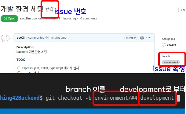 해당 issue와 연관된 브랜치가 정확하게 파악되게 하기 위함입니다