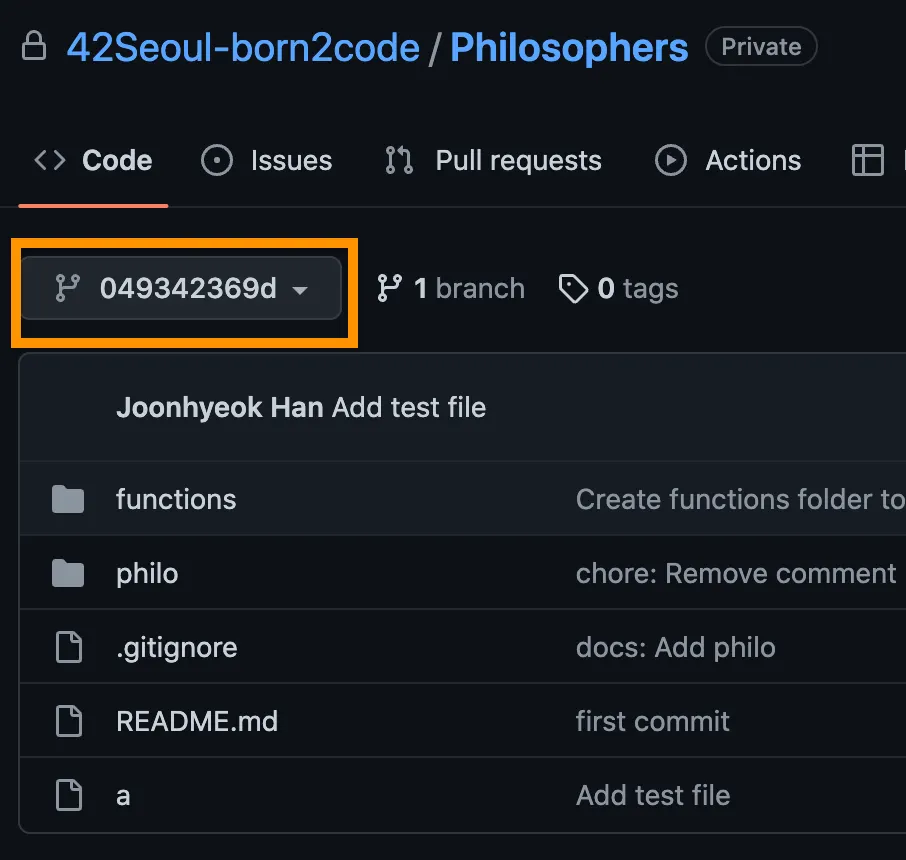 참고로 commit hash 는 commit 마다 부여되는 고유한 값을 의미한다. 그래서 commit hash 값을 이용해서 원하는 commit 시점으로 되돌리거나 해당 시점의 파일을 찾아볼 수 있다.
