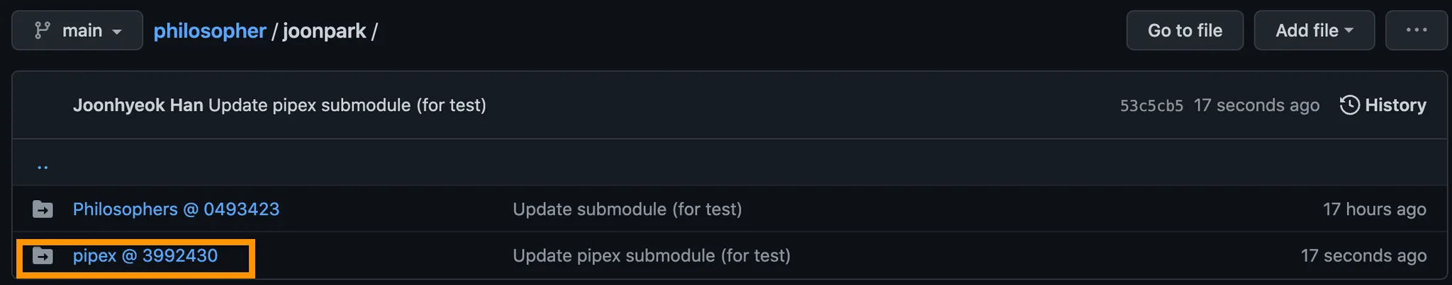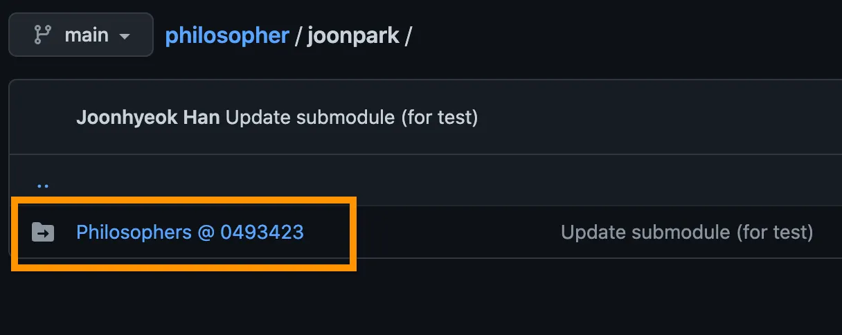 위의 사진처럼 해당 서브모듈의 최근 commit hash 값에 해당하는 3992430 가 표시되는 것을 확인할 수 있다.
