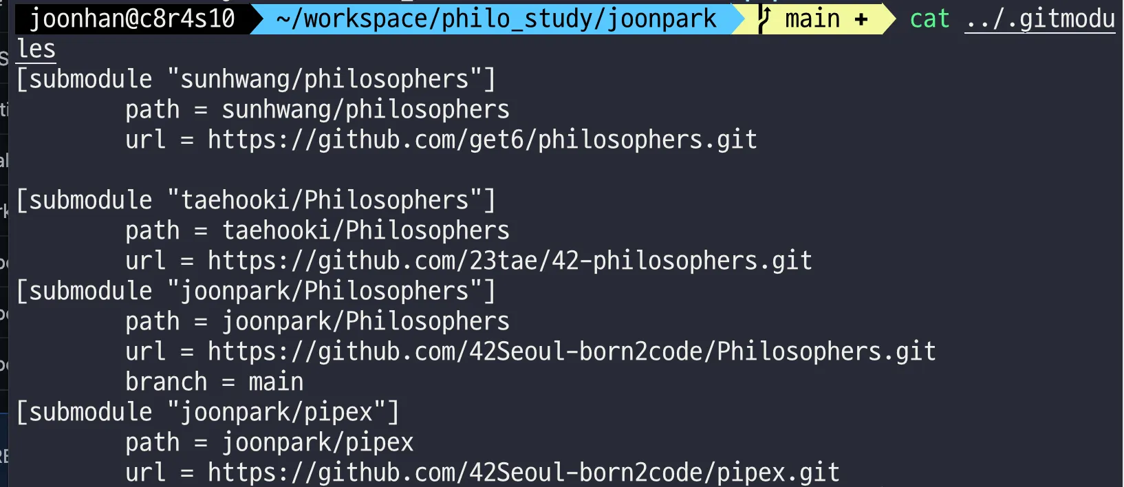 참고로 .gitmodules 는 git repository 내부에 있는 모든 서브모듈에 대한 정보를 저장하고, 관리하는 파일이다.