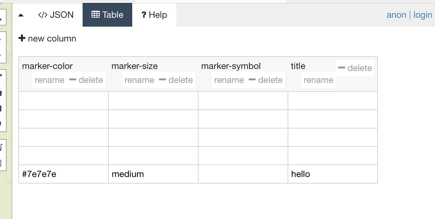 json 옆의 table을 눌러서 속성을 추가할 수 있다.