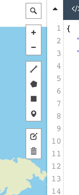 사이트에 들어가면 지도뷰와 json코드뷰로 나뉘어져 있다.
