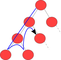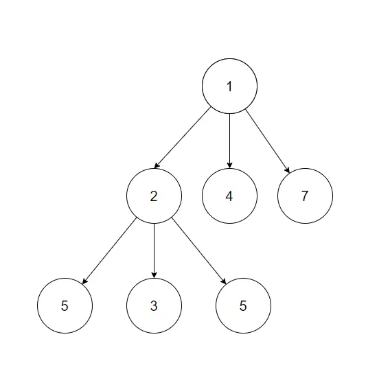 차이점이 한눈에 보이는 것을 알 수 있다. 위와 같이 한정 조건 을 적용한 뒤에 DFS 를 통해서 전체 탐색을 진행하는 것이 바로 백트래킹이다. 예제로 설명하자면 첫번째 행에서 만약 1을 택한다면 두번째 행의 숫자는 2,4,7이 존재하지만 2는 1과 같은 열이기 때문에 더 탐색하더라도 정답이 될 수 없다. 따라서 첫번째를 1을 선택하면 2는 유망하지않고 4와 7만 유망하기 때문에 4와 7만을 Node에 추가시킨다. 이러한 방식으로 가장 마지막 행까지 모두 수행하면 위와 같은 트리 구조를 얻을 수 있고 결론적으로 정답을 찾을 수 있는 것이다. 추가로 DFS는 아래와 같은 과정으로 탐색하는 것이다.