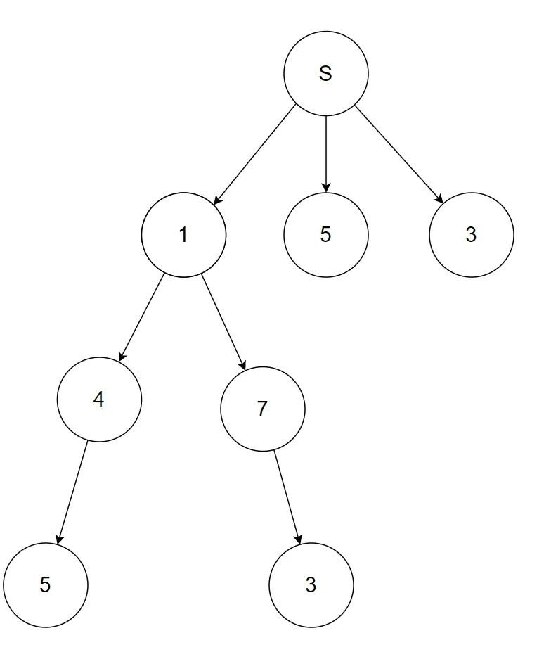 위 구조화 그림은 한정 조건과 상관없이 모든 경우의 수를 나타낸 구조이다. 만약 여기서 한정 조건을 추가한다면 아래와 같은 구조가 될 것이다.