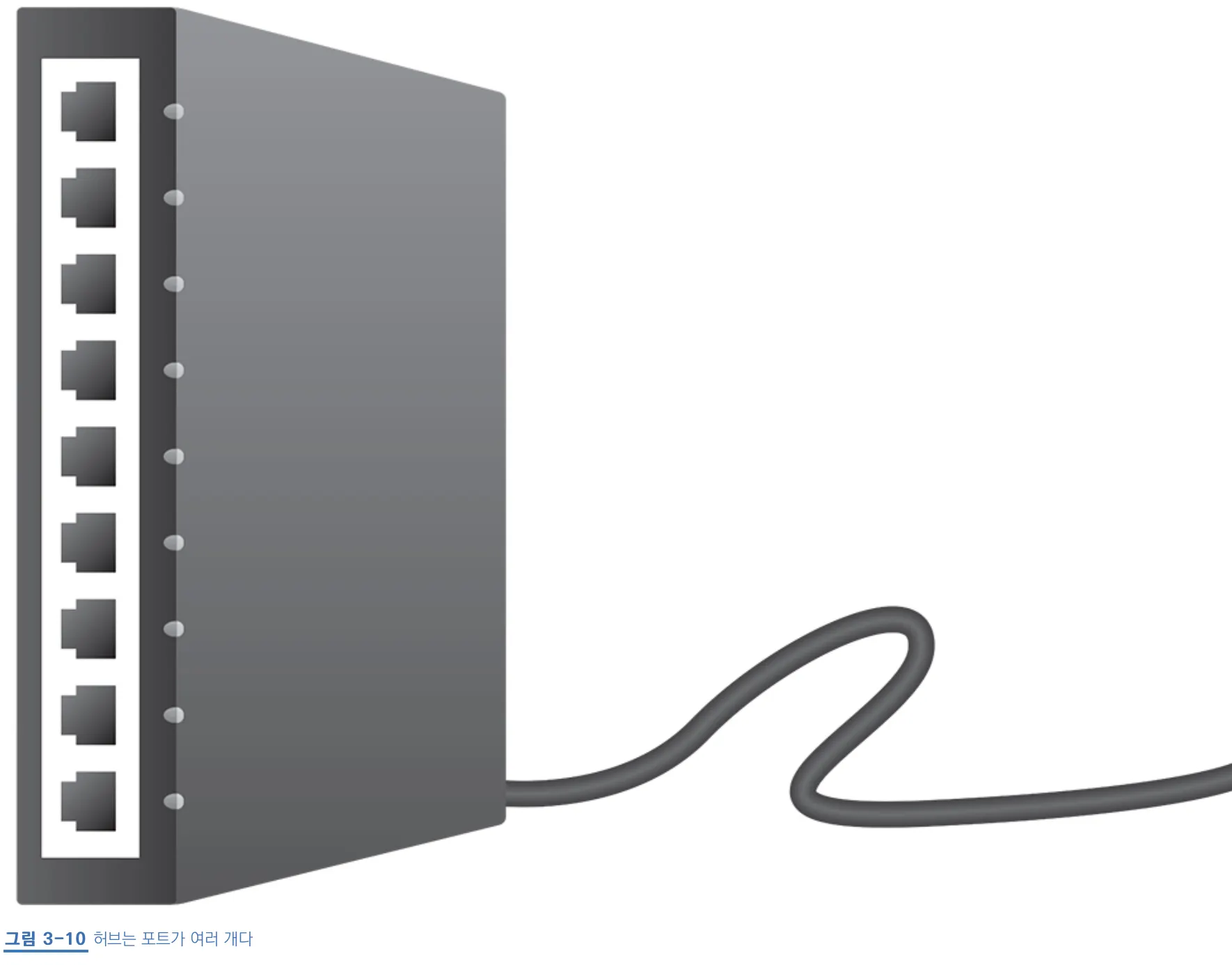 리피터 이외에도 물리 계층에서 동작하는 네트워크 장비에는 허브(hub)라는 장비가 있다.