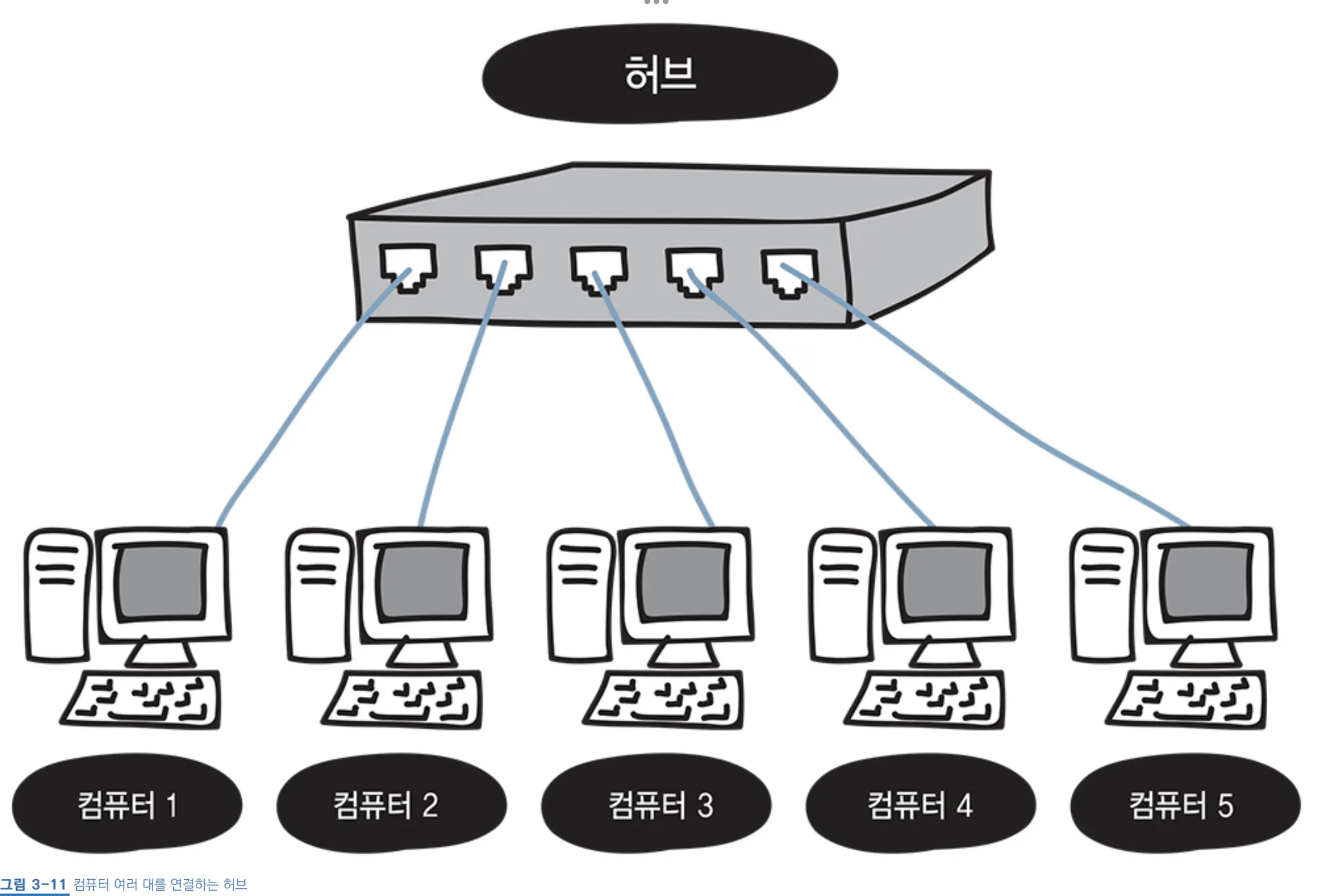 랜 케이블을 사용해, 컴퓨터와 허브를 연결할 수 있다.
