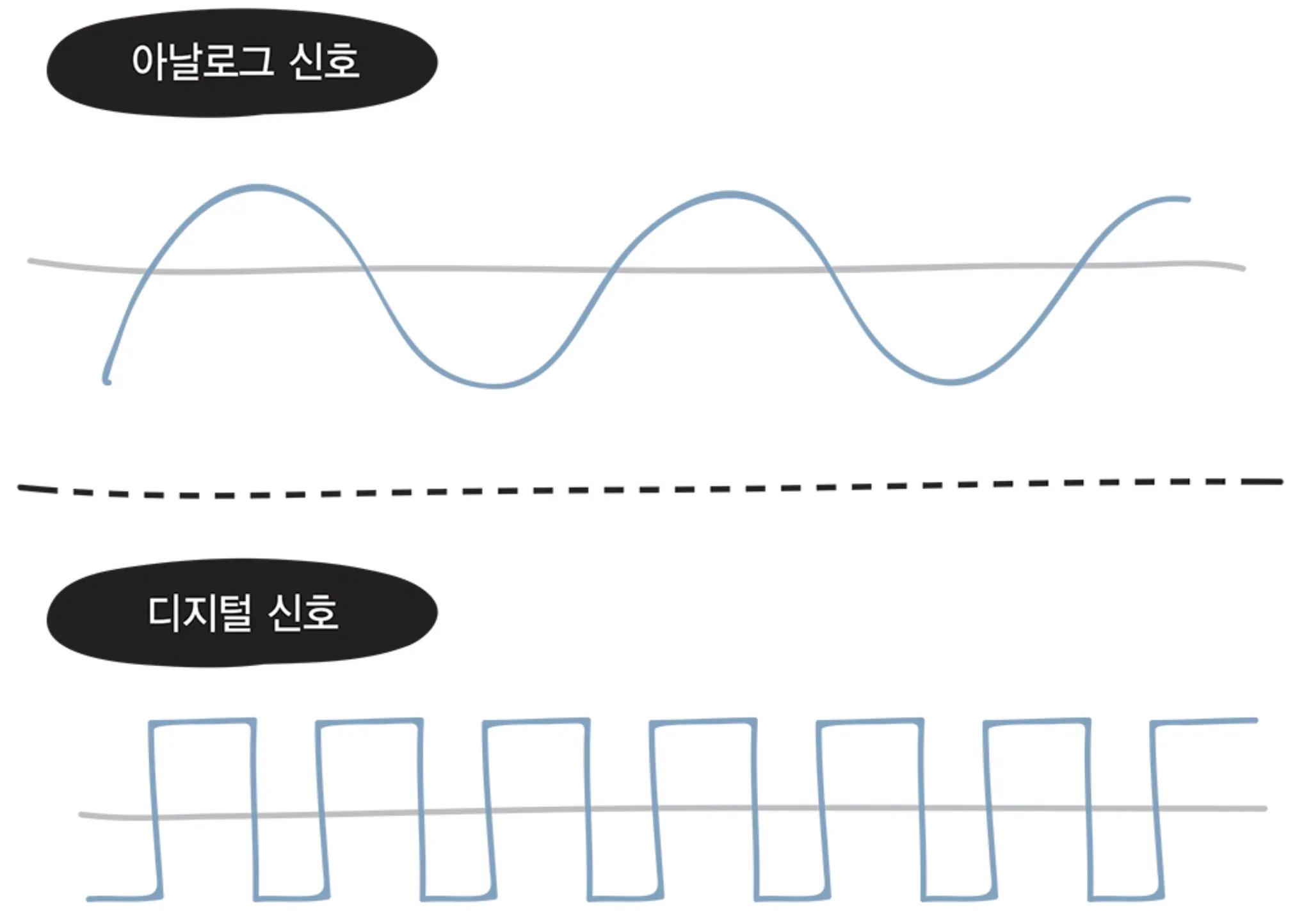 아래쪽 모양 전기 신호를 디지털 신호라고 한다.