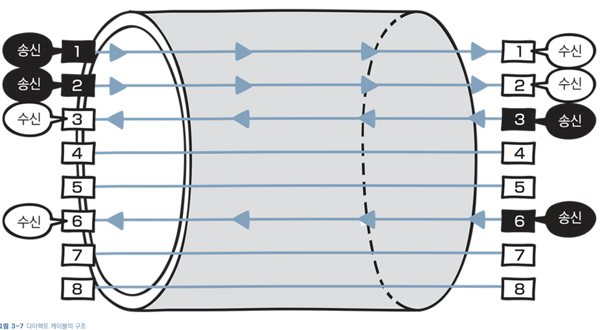 다이렉트 케이블이나 크로스 케이블 모두 실제로는 1, 2, 3, 6 번 구리 선을 사용한다.