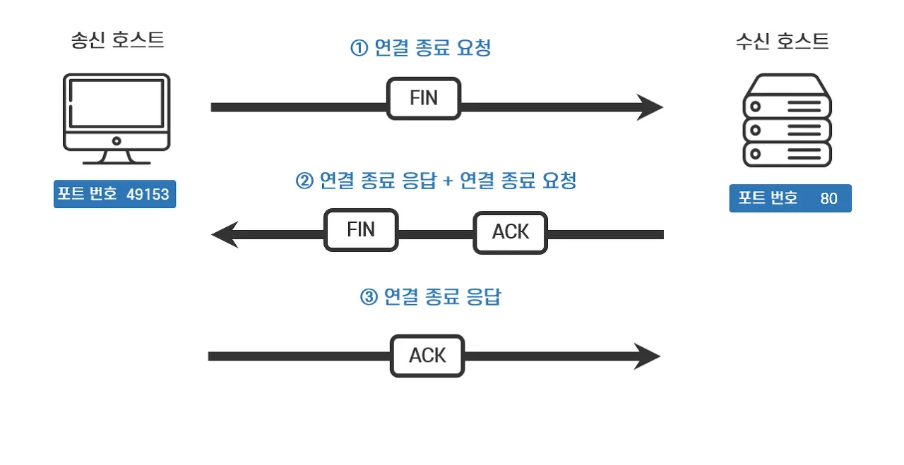 연결 요청 시에는 SYN과 ACK코드를 사용했지만 연결 종료 시에는 FIN과 ACK 사용.