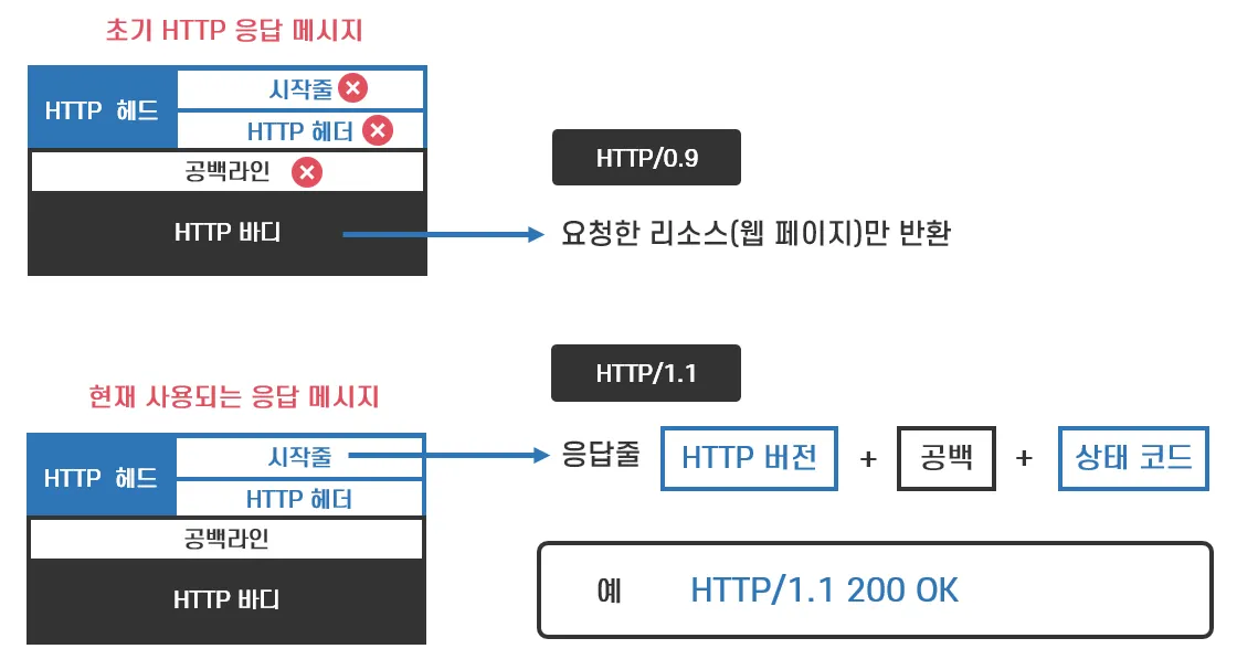 HTTP 메시지 첫 줄에서 HTTP 요청을 실행한 결과를 응답.