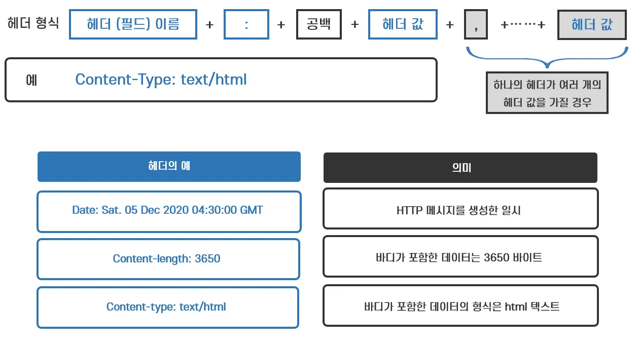 요청과 응답에 필요한 부가 정보를 선택해서 넣음.(0개가 올 수도 있고, 여러 개가 올 수도 있음.)