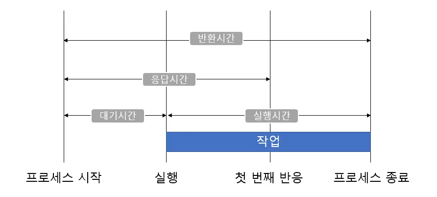 응답 시간: 프로세스 시작 후 첫 번째 출력/반응이 나올 때까지 걸리는 시간이다.