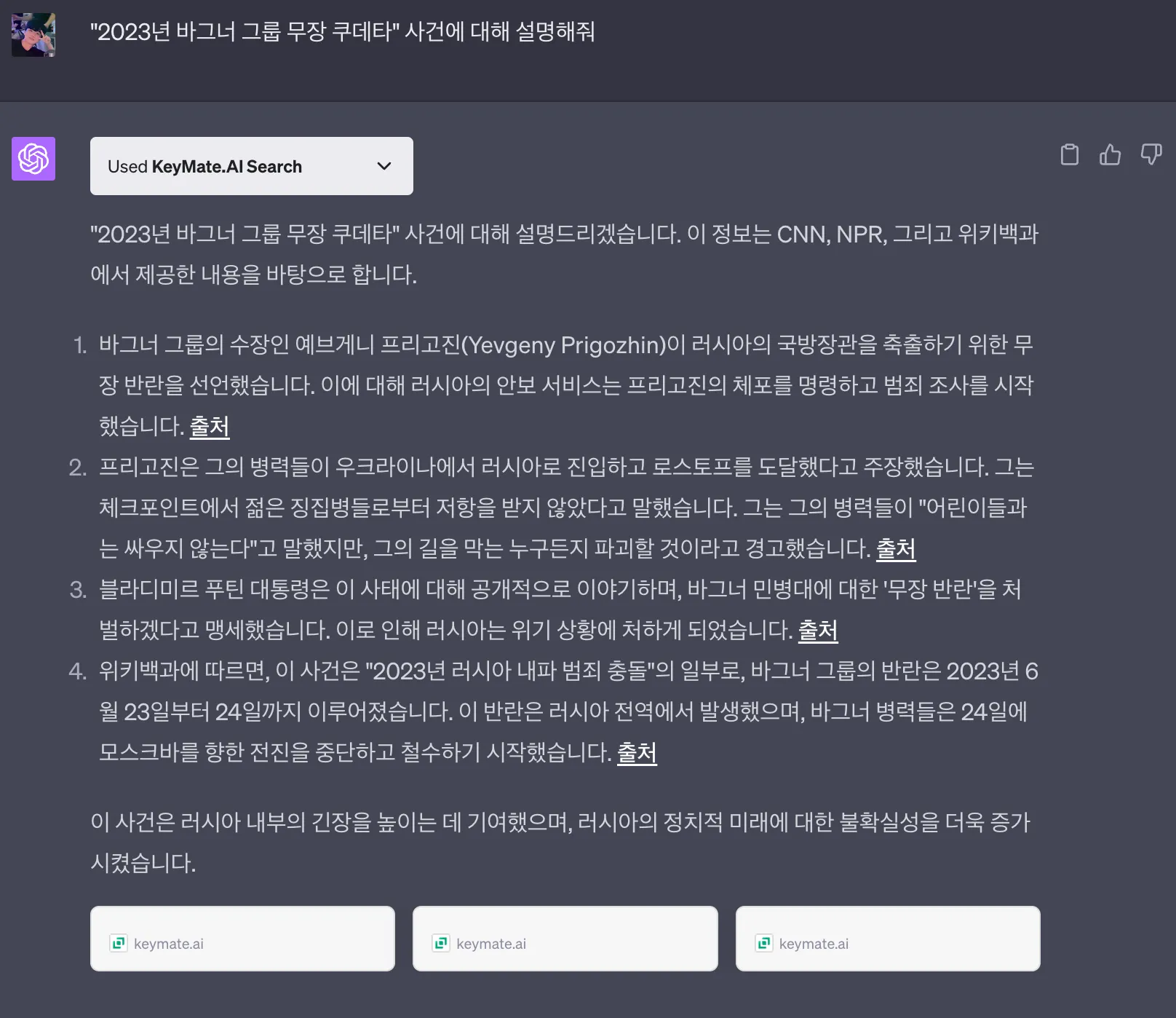 Search 플러그인을 적용한 GPT에게 같은 질문을 해봅시다.