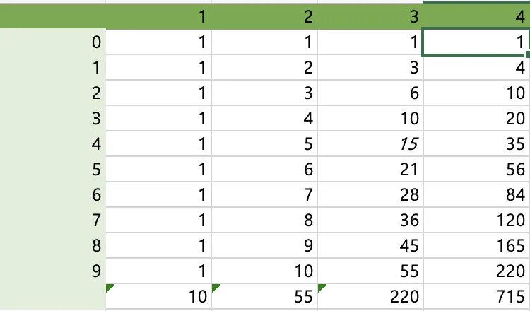dp[i][j] = ((i == 0 ? 1 : dp[i -1][j]) + dp[i][j- 1]) % 10007;