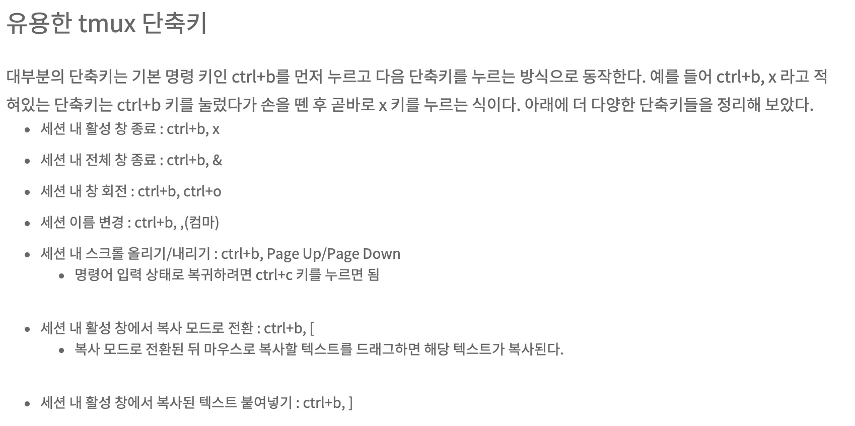 나중에 무거운 프로그램의 빌드 작업을 해놓아야 하는 경우, 이 tmux를 사용하여 터미널 창을 끄더라도 계속 빌드가 이루어질 수 있도록 할 수 있는거죠.